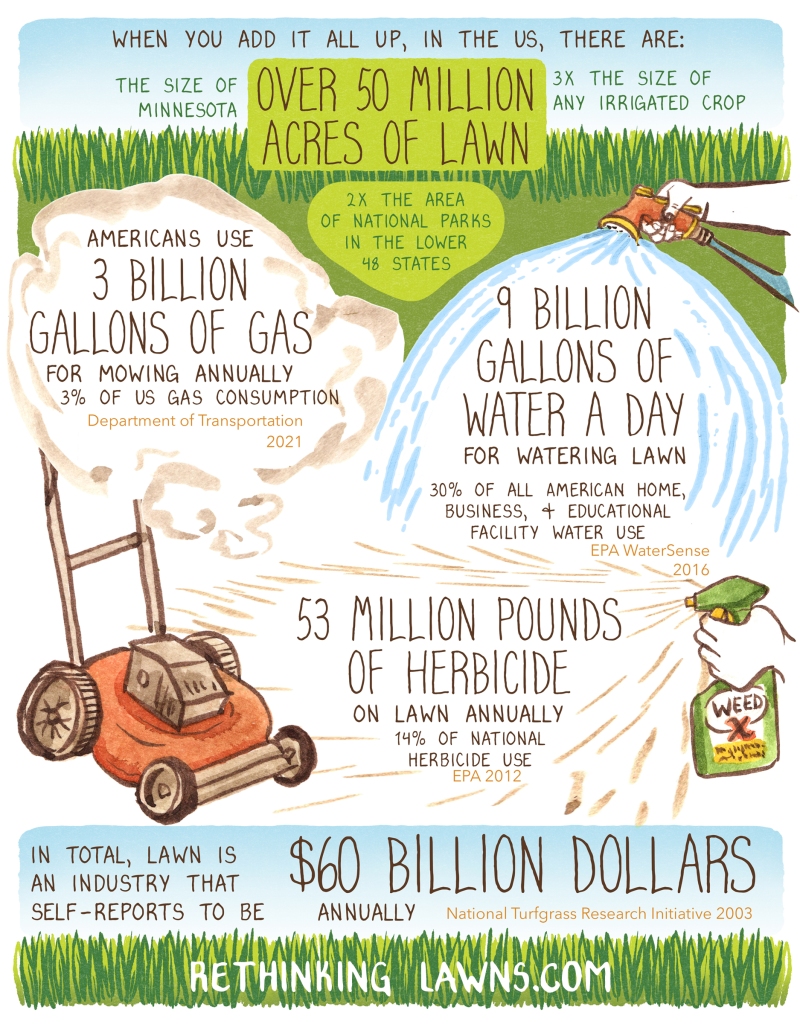 The United States has at least 50 million acres of lawn.